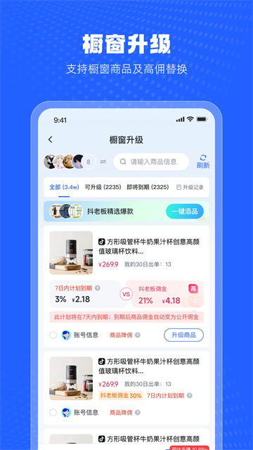6.收益保障:自动检测橱窗低佣商品,掉链提醒、爆单通知等