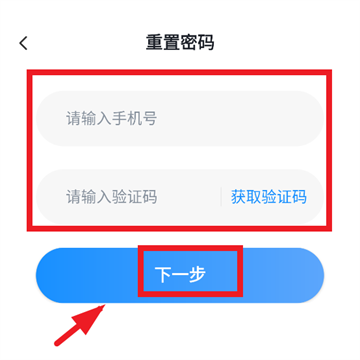 输入手机号,输入验证码,点击下一步重置密码即可