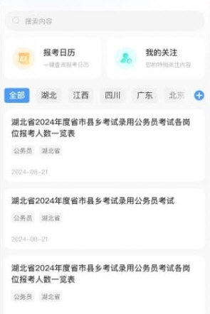 用户可以将自己计划考的地方添加关注,便于查看该地的考试资讯。