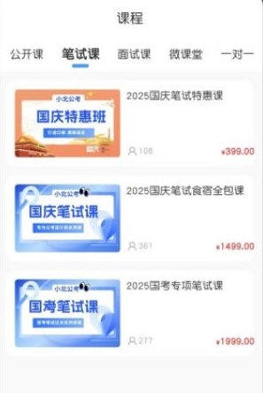 软件里面有关于公考的笔试课、面试课等,清晰分类便于选择。