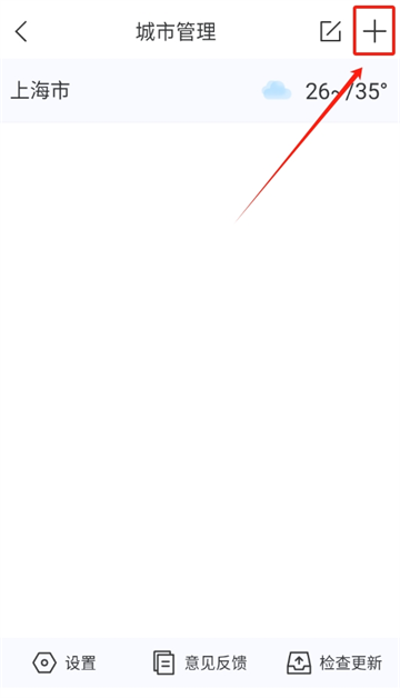 2、在弹出的菜单里点击右上角一个小小的加号按钮,准备输入你想关注的地方。