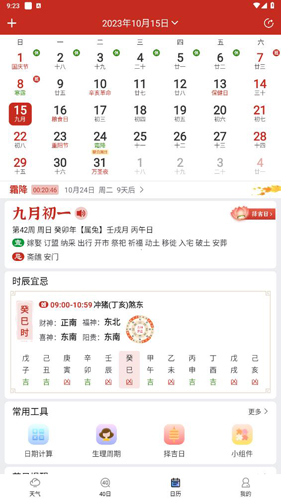 3、【日历】的话也就是万年历的功能,你们就可以看到所有的关于日历的相关的数据。也可以看看今天是不是适合做什么等等,当然也都是最基础的,你们可以作为参考。