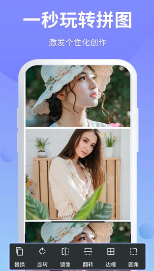 使用拼图功能将多张照片组合,支持旋转、边框、镜像与圆角等排版操作,个性十足。拖拽手势可调整图片层级关系,打造空间纵深感。