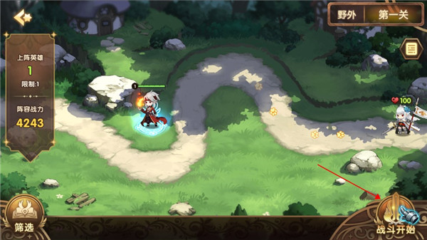 1、游戏开始,将英雄拖动到阵位上使其战斗。