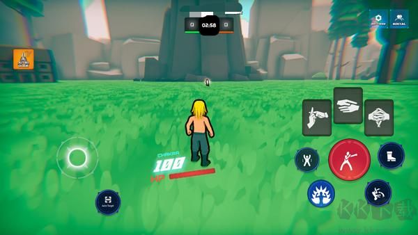 5、进入游戏如图,玩家需操纵角色移动战斗,以及释放强力忍术;