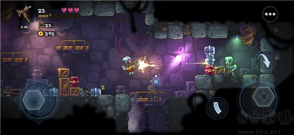 1、横版射击爽快感:左右移动跳跃射击,一枪爆头僵尸脑袋开花,简单直接的操作带来纯粹的动作乐趣。