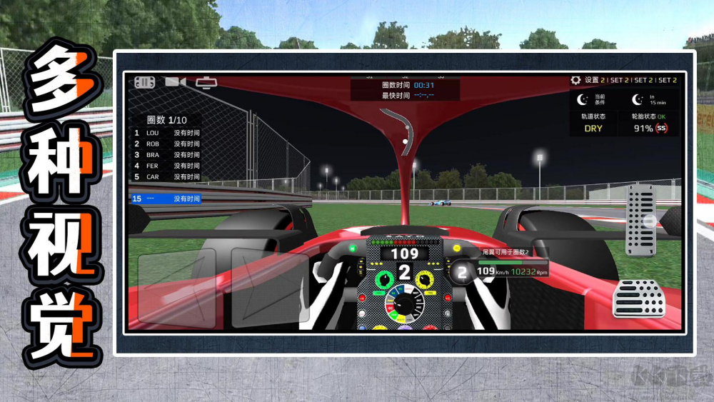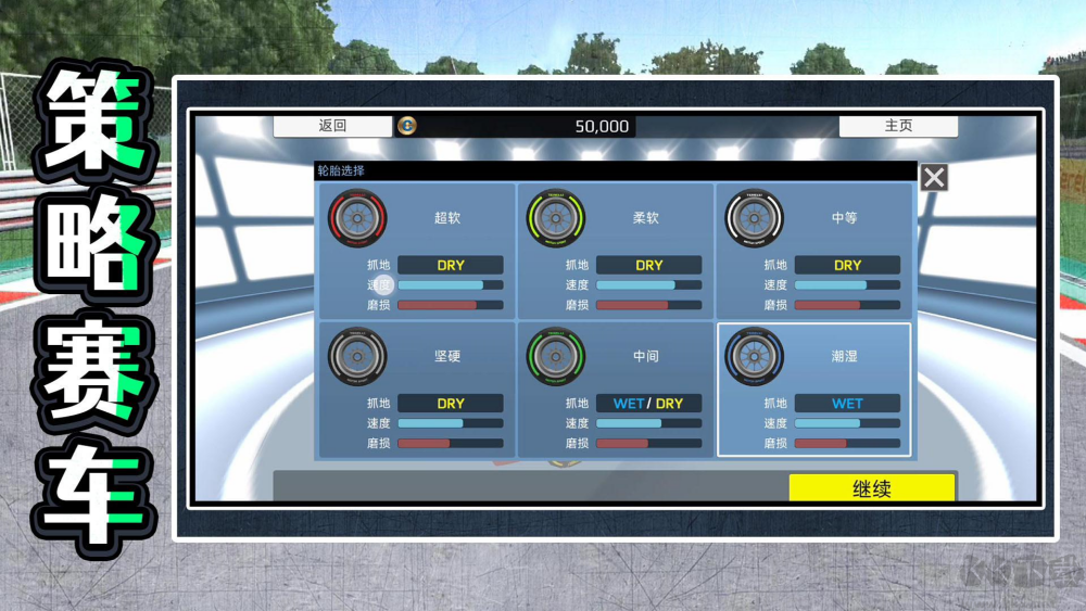 4、轮胎规则:每场比赛必须使用指定种类的轮胎,干地胎雨地胎不能混用,进站换胎会消耗额外时间。