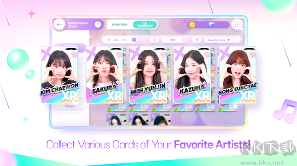 2、卡牌收集养成乐趣:从专辑封面到艺人可爱帅气一面,不同主题卡片晋级UR后解锁动态效果,集卡过程充满成就。