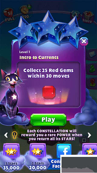 2、游戏玩法非常简单,与经典三消玩法类似,通过三个或以上的相同宝石来进行消除;