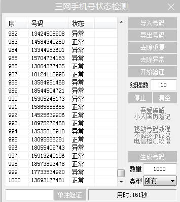 三网手机号状态检测是一款浏览辅助类软件,它可以帮助用户批量检测手机号的状态,筛选出能正常使用的手机号,避免了异常手机号使用的麻烦问题,非常适合电话号码销售人员来使用,喜爱的朋友赶快下载体验吧!