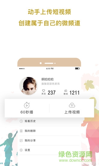 通过手机端编辑短视频,一键上传 ,实时分享,创建自频道,最轻松的发布,最简单的推广,轻轻松松当网红。