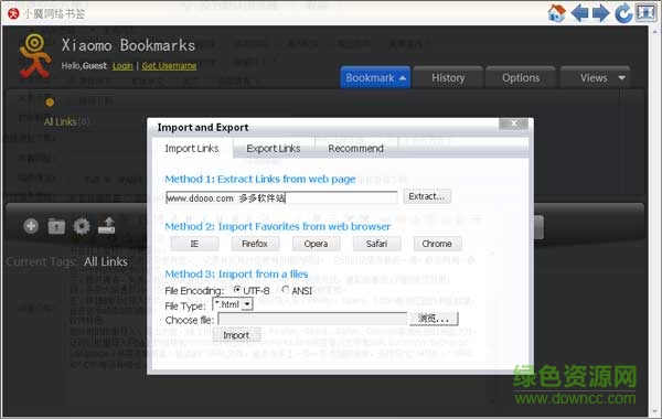 五、快捷的网址导入功能,人人都有一个网址站; 可以导入IE、Firefox、Opera、Safari等浏览器的书签数据,省去您手动添加的麻烦;