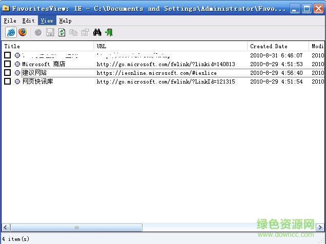 列表中的每一行指定了该项目的标题,URL地址,创建/修改日期的书签项目和文件夹的名称。