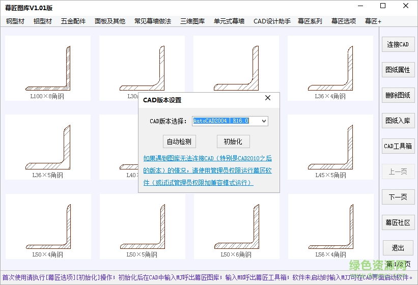 幕匠图库,使用之前需要初始化,连接上CAD就可以使用啦!