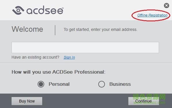 2.打开acdsee2019,会提示需要注册,选择右上角的“Offline Registeration”