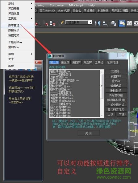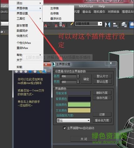 6.选项栏可以用来添加插件到场景助手里,提供了不少3dmax插件