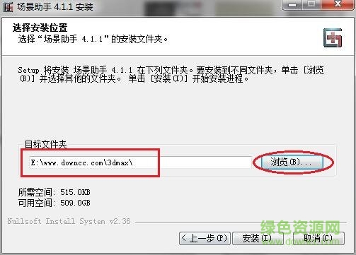 3.点击“浏览”按钮,指向你的3dmax安装目录,不然无法继续,“安装”是不会亮起来的