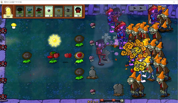 2、合理利用道具或者是植物,清楚地图上的墓碑障碍,这样就可以获得更多的位置种植植物去战斗;