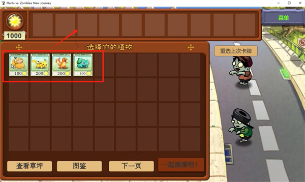 3、进入后把现在拥有的植物全部放入这里,后续会解锁更多的宝可梦进行作战;