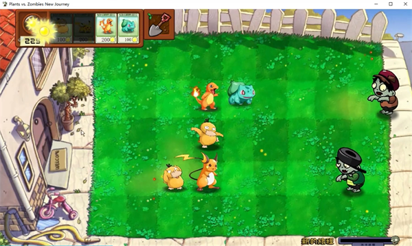 4、然后就可以根据战场上的僵尸出现情况,合理的放置所有的宝可梦开启攻击抵御僵尸的前进。
