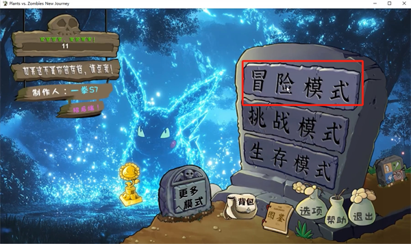 1、进入游戏后,看到有多个游戏玩法模式可以选择,我们以冒险模式来讲解;