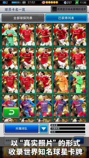 以真实球员照片的形式 收录世界知名球星卡牌!