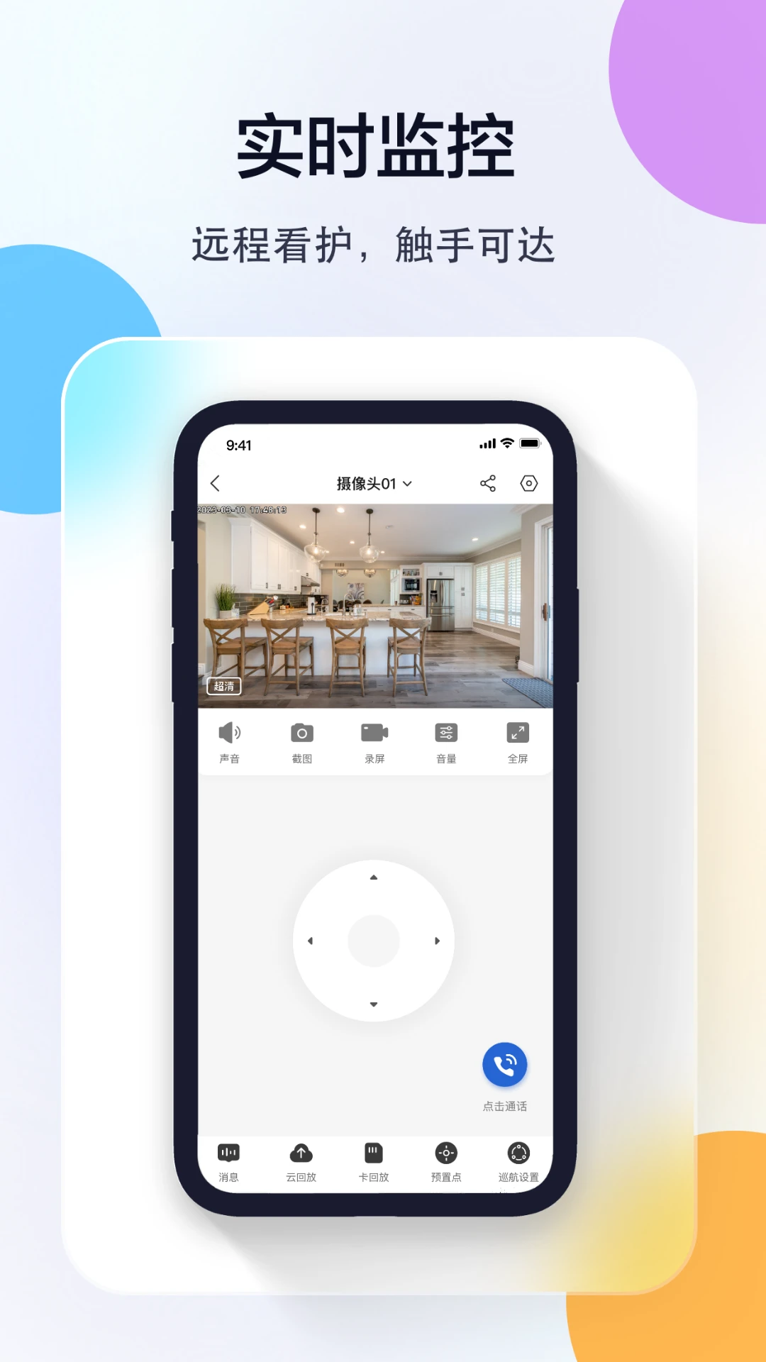 看店看家:随时查看家里、商铺、办公室等场所的实时视频、云端录像,让您轻松管理办公,随时护家安全,实现远程关爱、智能陪伴,分享精彩生活。