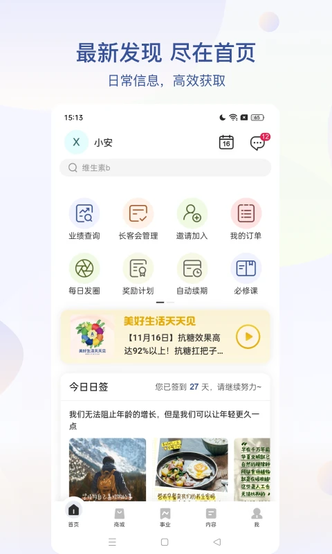 就如您的事业管家,整理您所有的核心展业信息。包括业绩,奖励,收入,顾客管理及新人专区等。