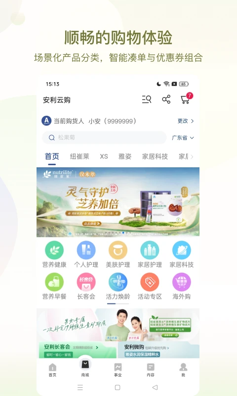 让您可以浏览及搜索安利所有产品,随时随地加购及分享给小伙伴下单,参与促销及配售活动,并提供更全的支付方式,轻松便捷满足您的购货需求。