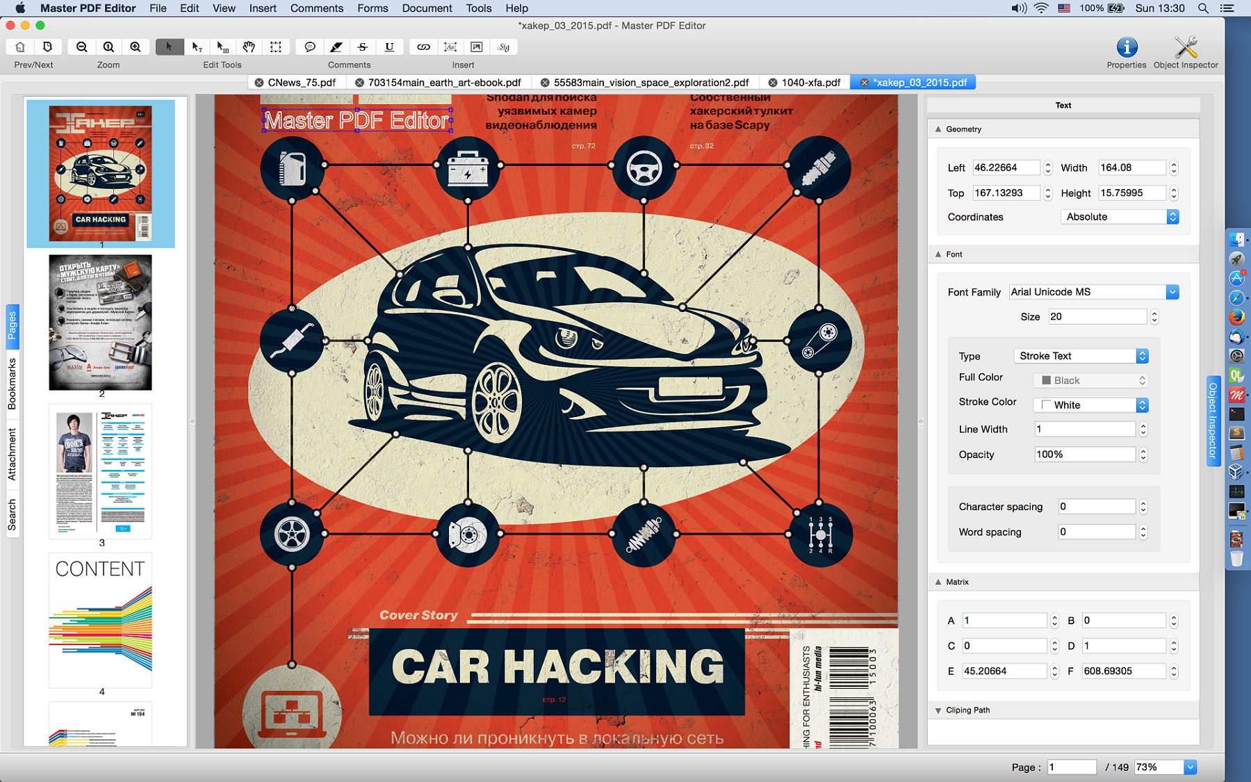 PDF编辑器Master PDF Editor Mac有着强大和丰富的功能,包括全面支持PDF和XPS文件,导入/导出PDF页面转换为JPG,TIFF,PNG,或BMP格式,将XPS转换为PDF(反之亦然),和128位加密。像记事贴和邮票,以及装在删除线,下划线增强的编辑功能。
