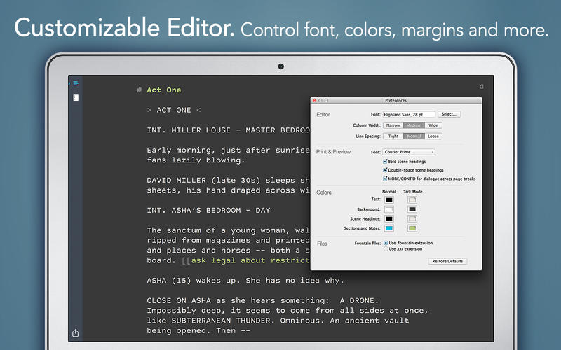 高地是屡获殊荣的剧本编辑器,让您专注于的话,而不是利润。由编剧约翰月和他的团队设计,高地是更好的方式来写的电影和电视。