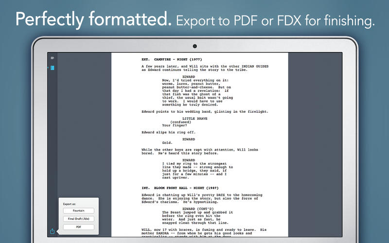 只需一次点击,高地变成你的话变成一个完全格式化的剧本,准备打印或导出为FDX或PDF。