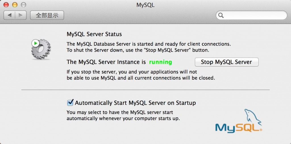 三个文件都安装完成之后,进入「系统偏好设置」,在面板的最下面你会看到一个 MySQL 的设置项,点击它之后就可以启动MySQL。