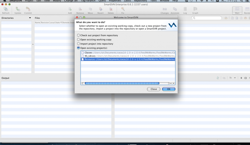 Smartsvn除了基本的Subversion命令如checkout, update, commit, merge以外,它也支持标签和分支处理(无需处理URL),是Mac电脑上功能完备的Subversion的客户端,有内置的比较和冲突解决工具,无需安装其他工具就可以处理SVN工作拷贝。