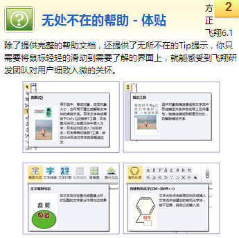 无需经过专业培训,您就可以排出精美的版面。使用方正飞翔,您可以为图片以及文字添加阴影、羽化、透明、艺术字等各种效果。同时提供钢笔、剪刀、颜色吸管等多种创意工具。