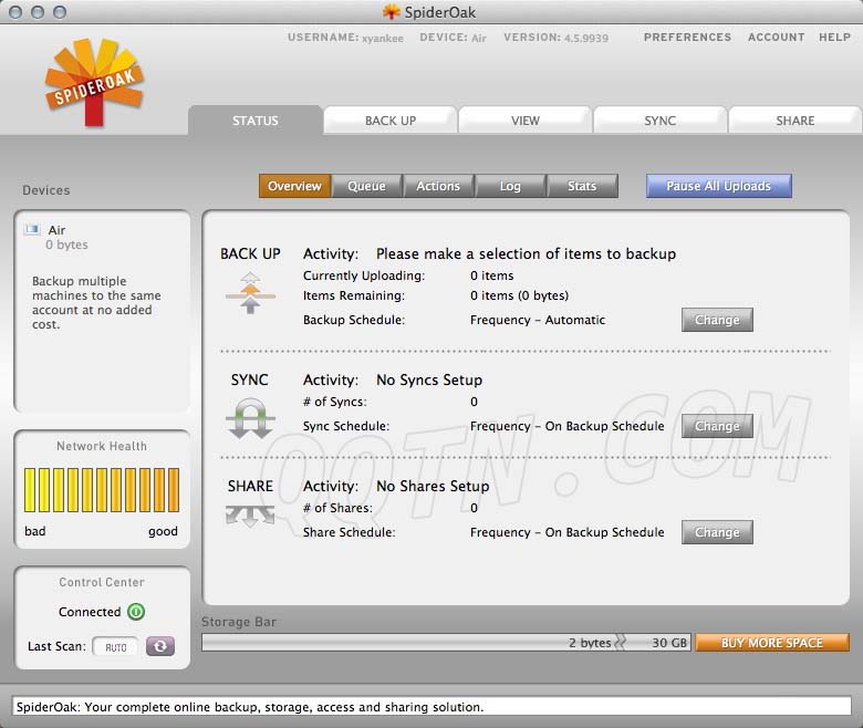 SpiderOak网络备份软件Mac版是一家美国的在线备份工具,可以使用异地服务器备份,共享,同步,访问和存储数据。有了SpiderOak,你可以轻松地管理在零知识隐私环境数据。