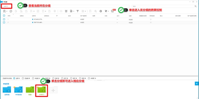 2、进入分组(默认是全部设备分组哦~),点击跨屏控制,即可开始控制啦。注意跨屏控制是和分组相关,您当前在哪个分组,进入跨屏控制就是展示的哪个分组的设备列表。