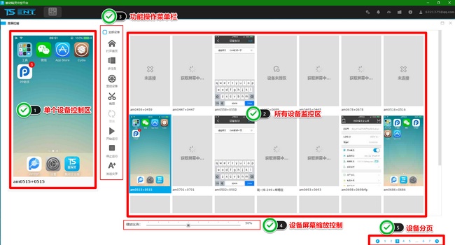 下方还提供了设备屏幕缩放控制功能以及设备列表分页
