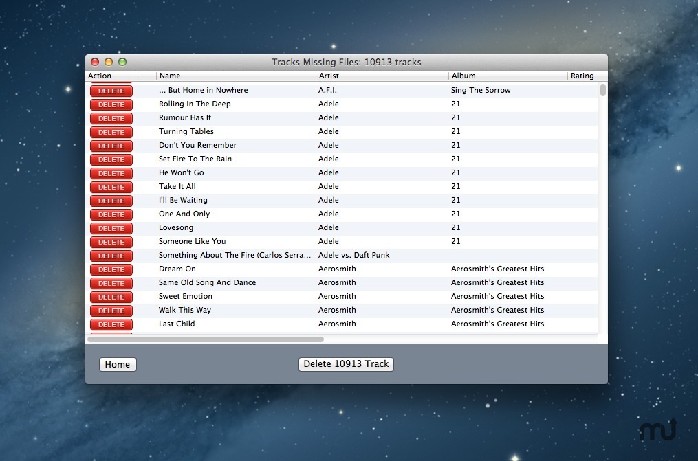 如果你曾经移动或使用取景器(或任何其他应用程序,这不是iTunes的)已删除的介质,您可能会留下一些曲目,将不会在iTunes中播放。随着触摸一个按钮,欺骗客场清除从iTunes这些曲目让您不再必须看到对话框,恼人的“找不到文件”。