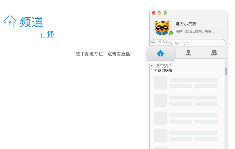 2、常用频道:为你记录你最常使用的4个频道,无需再频繁输入ID