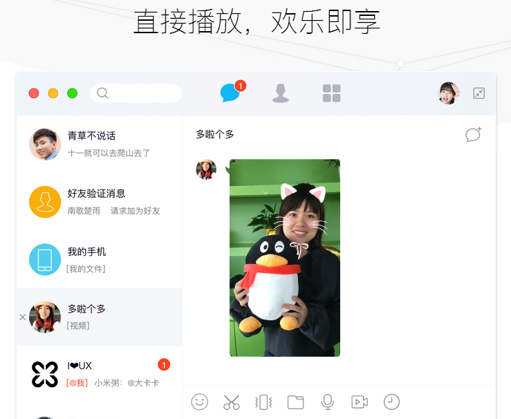QQMac版v5.4.0公测版是Mac中的最新版本,腾讯QQ官方要你一起参加,安装包更小,速度更快,享受最新的QQ体验。功能齐全,查询股票,查询天气,更方便,更乐趣!