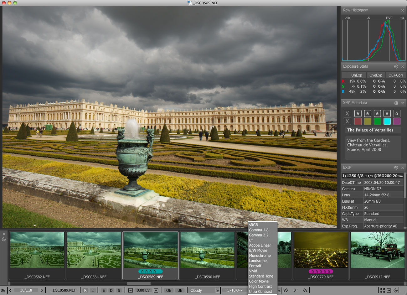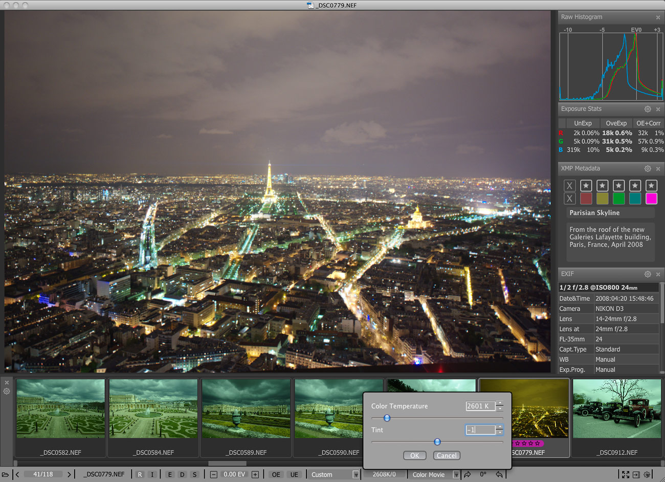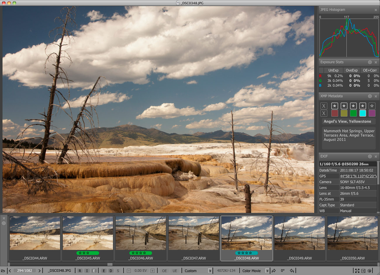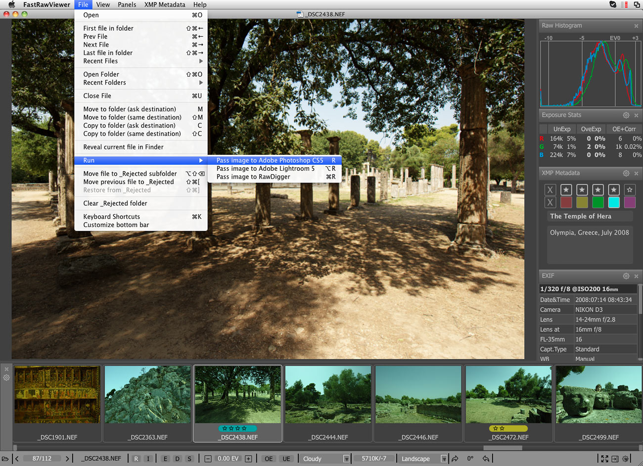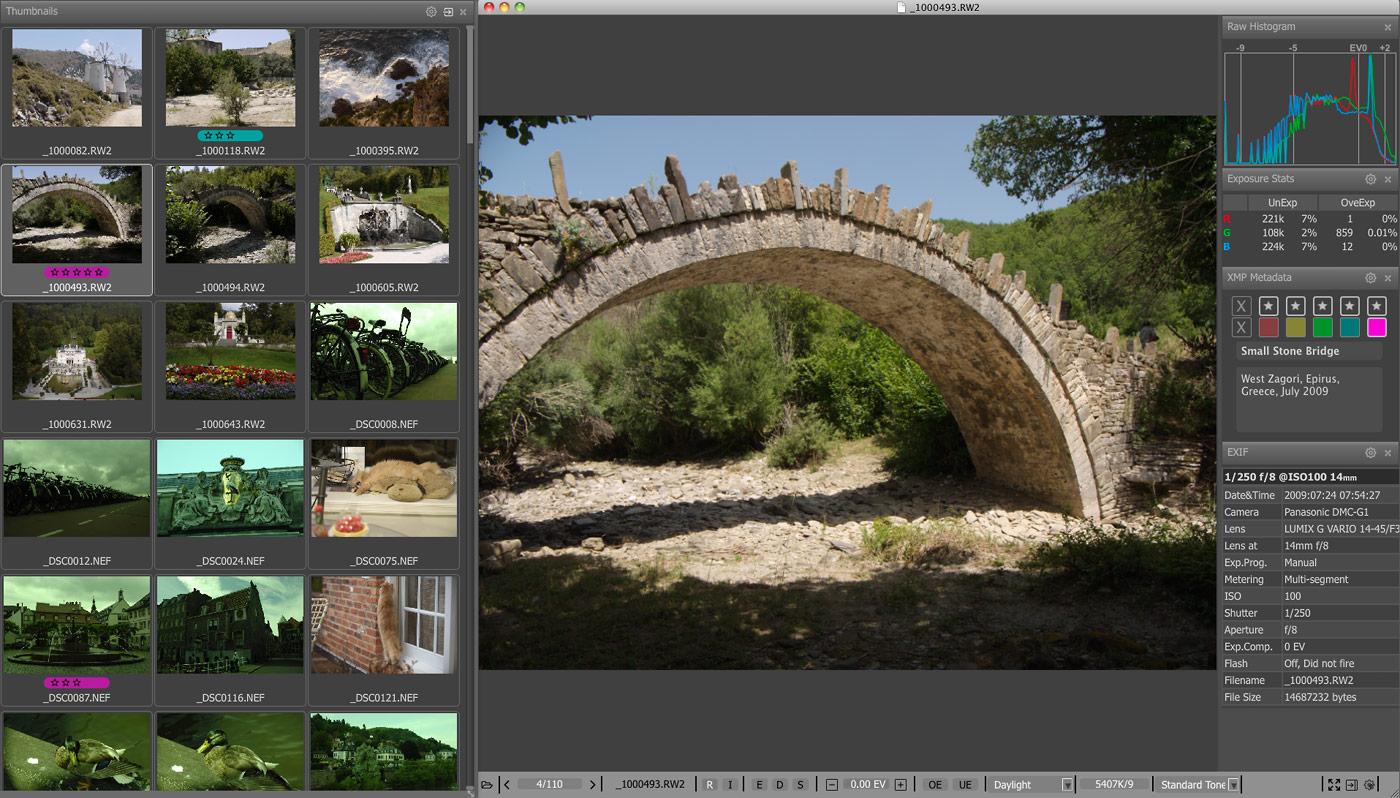 你可以很容易地应用评级和标签,查看基本的EXIF数据,以及对原始直方图。您可以通过快速移动他们到一个“拒绝”文件夹淘汰差的镜头,或者我们对您最满意的照片,将它们移到一个不同的文件夹进行排序。为了使其更加高效的时间,大多数操作可以通过键盘快捷键来完成。