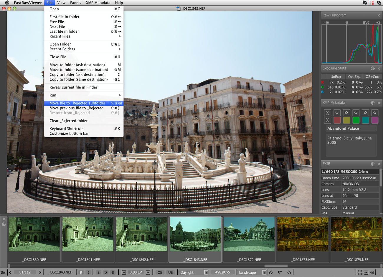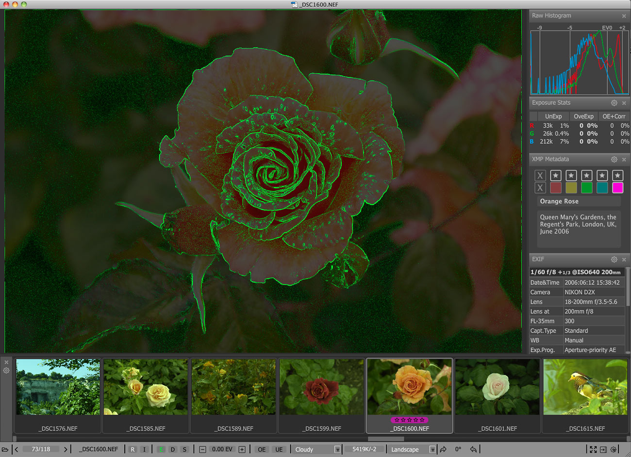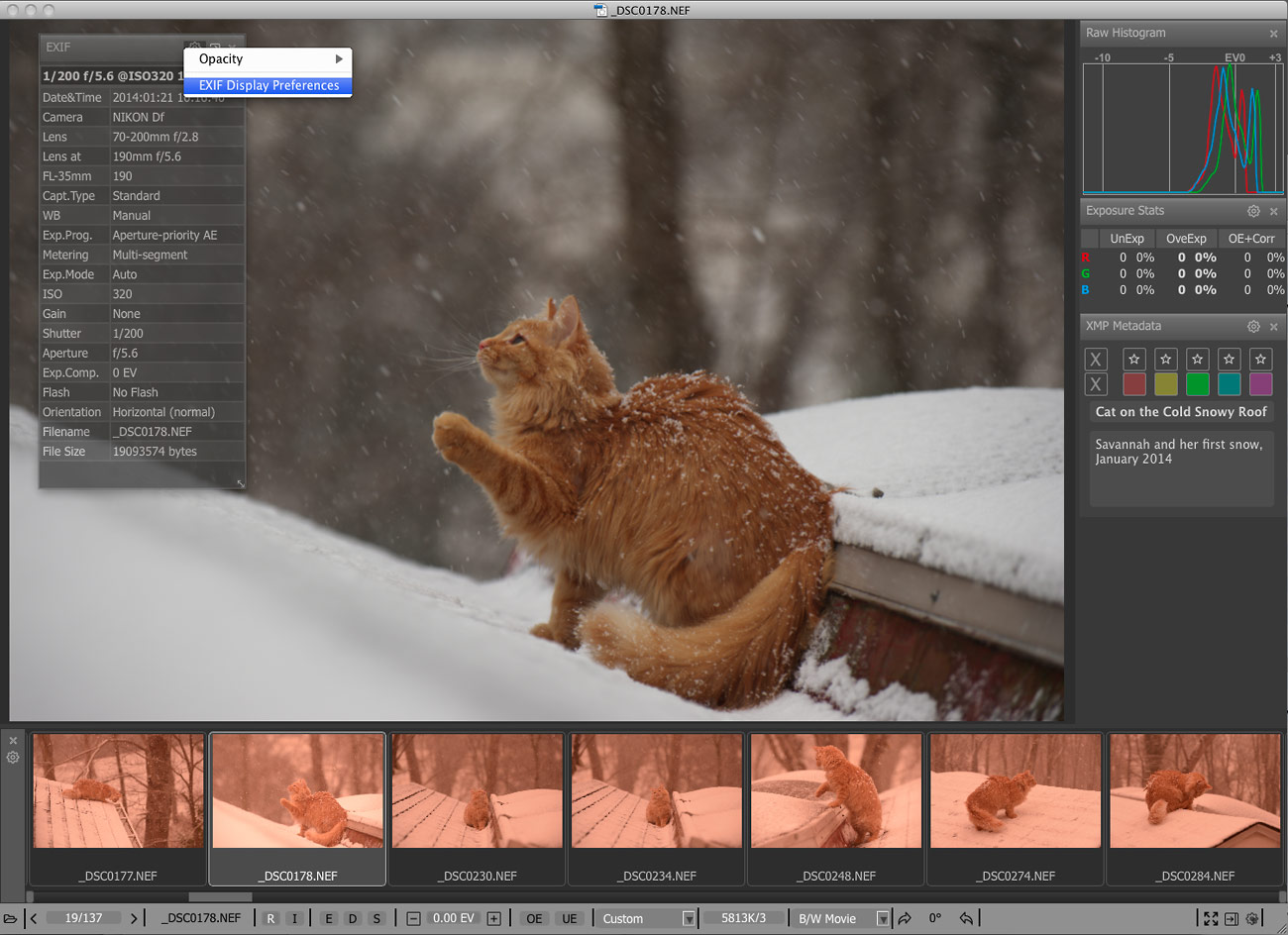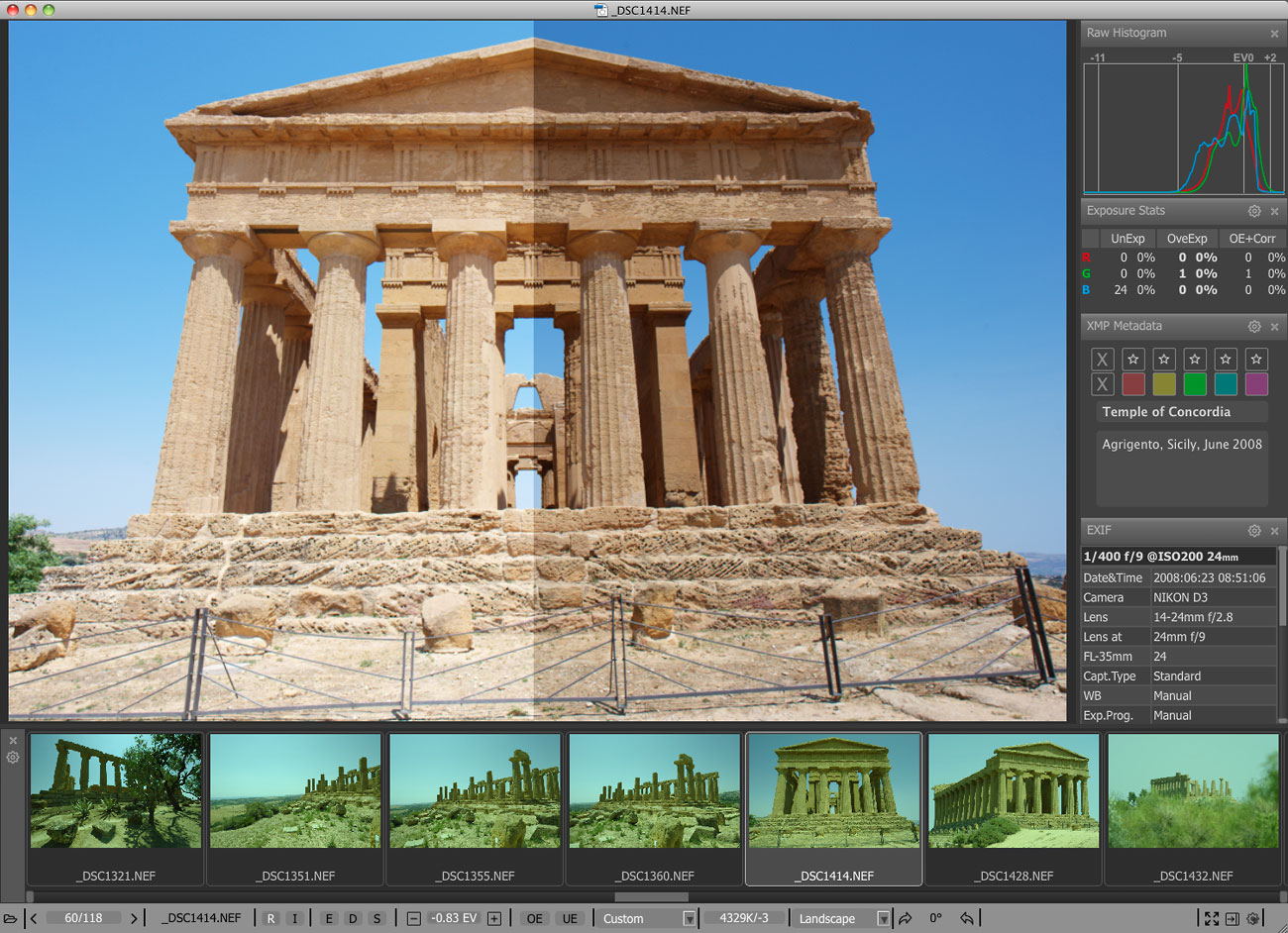 你可以很容易地应用评级和标签,查看基本的EXIF数据,以及对原始直方图。您可以通过快速移动他们到一个“拒绝”文件夹淘汰差的镜头,或者我们对您最满意的照片,将它们移到一个不同的文件夹进行排序。为了使其更加高效的时间,大多数操作可以通过键盘快捷键来完成。