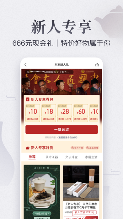 东家APP是致力于高品质、高格调东方美物直购平台,致力于让传承成为潮流,让东方美学融入家庭生活,以电商拍卖、产业聚合、匠艺创新等形式,深耕数十个产业类目,产品涵盖了茶叶、茶器、首饰、文玩、家居、食味、服饰7大工艺美术类目,真选名匠好物,尤其在茶叶茶器、玉石翡翠、文玩家居等类目中,东家已成为品质优、选择多的平台。 【好物不贵】 平台涵盖茶叶、茶器、首饰、文玩、家居、食味、服饰7大工艺美术类目 真选名匠好物,仅20%选品通过率,标准化评测,层层审核严格把关产品质量 【同好有圈】 国风同好者奔赴的美学生活 致力于打造东方生活社区、多维度分享汇聚文化,满足年轻人对东方生活的期待 【名器拍卖】 开展古董艺术品线上拍卖,古董拍品均由浙江省文物局报备 臻选名匠之作,网罗收藏级当代艺术品,助力轻收藏爱好者起步 0元抢拍、直播拍卖、专场拍卖、拍拍乐...轻松助力入门收获拍卖乐趣 【玩法出新】 6大创意玩法,有品、有趣、有体验 拍卖:百万重器0元起拍,7天无理由退款 直播:与大师面对面聊天挑货 众筹:匠心好物,低价抢购 伙拼:邀请好友参伙,价格更优惠 押窑:属于你的专属落款,玩的就是心跳 鬼市:每晚一件1折产品,幸运盲买,收获捡漏乐趣 【联系我们】 微信公众号:东家丨真选匠心美物 微博:东家APP 抖音:东家APP 客服热线:400-100-85111. 修复新系统分享不可用问题 2. 修复部分机型相册选择异常问题