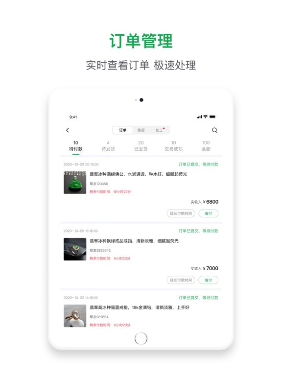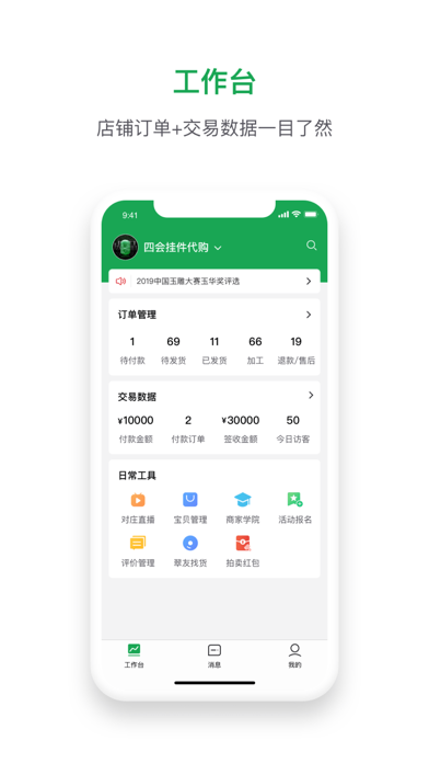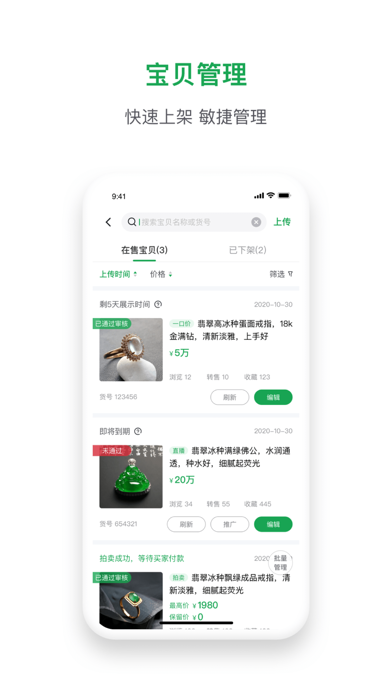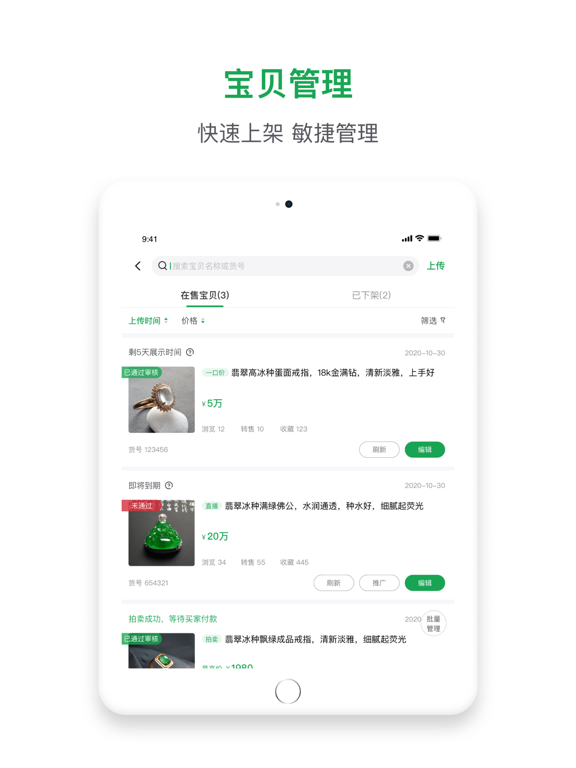 珠宝卖家助手APP是针对已入驻对庄业务的商家推出的管理类软件,商家可以随时利用这款软件管理店铺。主要功能有订单管理,宝贝管理,对庄直播,交易数据,消息,我的钱包,子账号管理,商家入驻申请,多店铺管理等。开通直播业务的商家可使用本软件(iOS版本)进行直播卖货。营销推广工具丰富,一站式搞定商家日常经营。 主要功能简介 【申请入驻对庄业务】免费申请入驻对庄业务,急速开店 【订单管理】可管理店铺订单,可催付,订单发货,售后订单处理,加工订单处理 【宝贝管理】查看宝贝,一键上架下架,编辑宝贝 【交易数据】可查看店铺每日交易数据,直播数据,宝贝数据 【对庄直播】一键开直播卖货,在直播中可进行拍卖营销,优惠券营销,抽奖营销 【消息】可及时回复客户消息,查看订单消息,公告,系统消息 【我的钱包】商家货款结算,可提现,可查看钱包明细 【子账号管理】为员工添加子账号,并赋予子账号默认管理权限 【多店铺管理】开多店铺的商家,可一键切换店铺账号管理1、优化体验 2、修复已知BUG