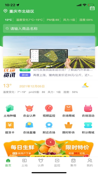 租地种植 智慧农场v3版的租地种植功能十分强大。用户选择心仪的土地租赁并种下喜欢的种子后,可以像玩游戏一样发出浇水、施肥、除草等指令,通过视频直播跟踪种植观察蔬菜的生长情况,最后,成熟收获的蔬菜会通过物流配送到用户手中。 农业认养 除了农业种植之外,v3版智慧农场还为用户提供畜牧认养功能。这个功能与种植功能相似,可以认养喜欢的土鸡、土鸭幼崽进行托管养殖,然后通过实时视频观察到动物的生长情况并收获到高质量的畜牧产品。 物联网农业 不论是在租地种植还是在畜牧认养过程中,通过设备传感器实时感知采集数据进行上传数据,传感器都发挥了巨大的作用,自动化管理。智慧农场提供稳定的、高清的、多功能的直播设备,让用户就算相隔千里,也能随时随地体验“种田乐趣”。 农场商城 还在害怕转基因食品和农药残留吗?智慧农场商城为用户提供安全放心、高品质的农副产品,不论是蔬菜水果,还是禽畜肉蛋,都能在这里找到直销商户同时能够实时直播农场基地,买到放心产品。 智慧农场作为第三方技术服务平台,所承担的责任是要让农民获益增收,是要让消费者感到方便和放心。智慧农场致力于“让智能走进农业”的宗旨从未改变,我们一直在路上。兼容ios15 修复bugfix