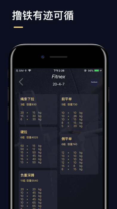 健身中常遇到的问题: - 立下运动的Flag,没有合适的打卡机制难以坚持。 - 单纯进行运动,没有数据记录跟踪,无法及时对运动量与运动强度进行科学调整。 - 想在运动过程中听音乐、调整呼吸或感受肌肉收缩,却因为计数而无暇他顾。 - 大多数健身应用要求用户根据给定视频进行锻炼,自由度不高,无法根据个人的喜好与需要决定运动项目与运动量大小。 - 难以获得较为准确的热量消耗数据,从而对饮食或运动量进行调整。 「Fitnex」如何解决问题: - 用户制定完运动计划后,通过将相应运动项目圆环填满的方式进行计划打卡,连续坚持纪录、单向运动纪录,多项纪录等您刷新。 - 记录您每天的运动量与运动用时,并描绘趋势曲线,您可以从相关数据见证自己的进步,并对每日运动量与运动强度进行调整。 - 您只需手持您的iPhone或借助运动臂包将iPhone佩戴在手臂位置,亦或借助手腕上的Apple Watch, Fitnex即可自动帮您完成记录工作。 - 支持54项运动模式,其中包括生活中的常规自重训练,以及健身房中常见的器械训练,您可以根据自身运动需求与喜好进行随意搭配,从而制定适合自己的运动计划。 - 在手机端根据用户的体重、身高、年龄等参数以及运动的幅度大小,进行热量消耗进行计算,在手表端再增加心率辅助计算,将卡路里的计算精确到极致,同时每天给出各项目与步行消耗总和,让您借以参考从而对当天饮食与运动量进行调整。 注意事项 - Fitnex在使用过程中需要调用手机设备上的部分硬件,如摄像头用以监测俯卧撑过程中的动作变化,因此需要用户授予相关权限,Fitnex向您承诺,相关调用仅用于监测运动变化,相应信息的采集也将在使用过后即刻释放,Fitnex不对该部分信息进行后台保留,绝不对用户隐私构成威胁。 - Fitnex中集成了HealthKit用以在Watch端进行心率监测,若您的手机设备未与Apple Watch配对或您的Apple Watch上未下载Fitnex客户端,应用不会用到相关HealthKit功能或向您索要相关权限。 -------------------------------------------------------------------- ---------- 【Pro会员订阅服务说明】 Fitnex提供5元/月或18元/年的Pro自动订阅服务,以为您提供附加功能,如添加更多自定义项目和训练模版等。该服务主要针对训练需求较多的专业级用户。对于大多数用户而言,基本功能已经足够。 当您确认首次订阅购买时,款项将从您的iTunes账户中扣除。除非在当前订阅期结束前至少24小时关闭自动更新,否则订阅会自动续期。您的帐户将于当期结束前24小时内被收取续订费用。您可以在「设置」-「Apple ID」-「订阅」中取消您的订阅。任何免费试用期的未使用部分(如果提供)将在您取消订阅时被没收。 ------------------------------------------------------------------------------- 有任何问题,请通过以下方式联系我们,让我们解决! Fitnex客服邮箱:feedback@kambuzz.com Fitnex电话联系方式:+8618219165619大家好,感谢大家使用与支持Fitnex,本次更新主要包含以下内容: •适配iOS 26。 ____________________________ 如果您对Fitnex有任何疑问与建议,请添加作者wx : 18219165619