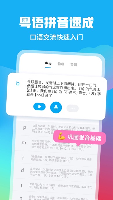 粤语U学院,为粤语学习爱好者量身打造的学习软件。地道、有趣,支持中文与粤语翻译,轻松入门学粤语,练就地道粤语广东话。从零基础学粤语(广东话),软件涵盖丰富的日常粤语词汇,更有粤语歌曲教学、粤语视频教程、粤语拼音、粤语翻译等功能。循序渐进,让你有效学粤语,唱粤语歌曲,看港剧TVB,学粤语翻译! 【功能介绍】 ●粤语真人发音教学 标准真人粤语发音,基础粤语拼音教学,19个声母,53个韵母和9个声调,详尽的发音技巧,还能粤语跟读录音哦。 ●精选粤语基础词汇 精选粤语基础60词,掌握基本的粤语有用词汇,还有粤语生词标记功能,每天打开循环巩固记忆,快速掌握粤语基础日常词汇,轻松开口说粤语。 ●粤语入门小课堂 粤语学习从粤拼开始,老师一字一句教你辨识粤拼,助你有一口标准好听的粤语发音。 ●有趣的粤语场景课程闯关 精编旅游问路、逛街购物、广式美食等粤语专题课程,更有经典港片古惑仔系列、警匪系列等,从粤语的词、句到粤语对话学习,循序渐进,闯关形式使粤语学习更有动力。 ●粤语歌曲正音学习 软件内每首歌曲都有标准发音的粤语歌词,粤语拼音,粤语音频,慢速朗读+重点字词讲解,轻松学会粤语歌曲。听着音乐学习粤语!各类粤语经典热门歌曲教学,从此成为K歌达人。 ●趣味TVB港剧台词 看TVB港剧,不需要看字幕的粤语翻译!严选多部经典TVB港剧台词,看港剧学粤语,轻松开口说粤语! ●趣味粤语配音 经典TVB粤语电视剧、粤语电影、粤语动画全都有,在经典粤语片中自己练习粤语口语发音,轻松愉快学粤语,流利说粤语。 ●智能粤语翻译 全能中文粤语互译,高效率粤语翻译,随身粤语翻译器。 ●地道的粤语进阶课程 日常生活粤语课程,地道精品课程,还设有课后答疑纠音服务,流利粤语开口说。 【使用交流】 ●您在使用中如遇到问题,可通过“常见问题与反馈”和我们联系,我们将竭诚为您服务。 ●有产品建议?想学习的粤语歌曲?想了解的港剧?欢迎留言,我们会努力改进!体验升级! 加载更流畅,闯关更丝滑!AI 纠音 + 港剧台词练口语,零基础也能快速开口。