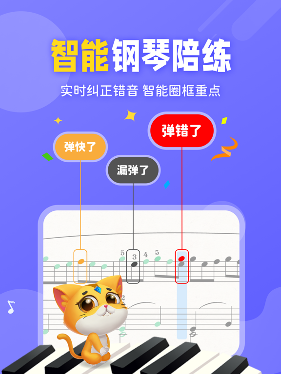 毛毛Ai陪练根据6-12岁孩子的认知能力和乐曲学习场景,科学设计了3种练琴模式,结合儿童心理学和海量钢琴老师的陪练经验及数据,通过Ai音频识别技术,帮助琴童高效解决不同阶段的练琴问题。毛毛Ai陪练不仅拥有丰富的曲谱资源,还能详细、完整地记录孩子的练琴轨迹。 练琴 就用毛毛Ai陪练 毛毛Ai陪练优势: 【智能精准纠错】 使用毛毛Ai陪练,Ai实时纠错,及时指正,让琴童边弹边纠正错音,解决练琴弹错不知道,越练越错效率低的难题,让每一次练习都是成长。 【Ai陪练不枯燥】 毛毛Ai陪练动画卡通形象友好,趣味互动激发练琴兴趣,让琴童练琴不再枯燥,收获更多快乐,愿意主动练琴。 【智能练琴评分】 针对琴童弹奏音准、节奏、速度进行多维度综合评分,错误标注、回放、示范等帮你正确练习。 【随时智能陪练】 使用毛毛Ai陪练,无需预约,琴童在家想练琴时,找到想练曲谱,即可弹奏练习,操作简单,解放家长。 【海量琴曲谱库】 海量钢琴电子曲库全覆盖,小汤大汤,巴斯蒂安,从入门到十级,琴童钢琴陪练,用毛毛Ai陪练就对了!1. 新增「跳过反复」功能体验 2. 解决了一些bug 3. 提升用户体验
