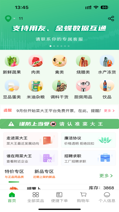 食堂买菜上菜大王,支持月结,如需月结请联系400-999-8582。 新鲜蔬菜、肉类、禽类、烧腊类、水产冻货、豆品蛋类、米面粮油、调料干货、新鲜水果,都可以通过APP购买 目前菜大王在东莞塘厦、常平、虎门、中堂、深圳龙华、龙岗、惠州陈江、园洲、广州番禺、花都、佛山顺德、南海、中山小榄、珠海斗门设立隶属菜大王品牌旗下专业配送中心 优化语音识别功能